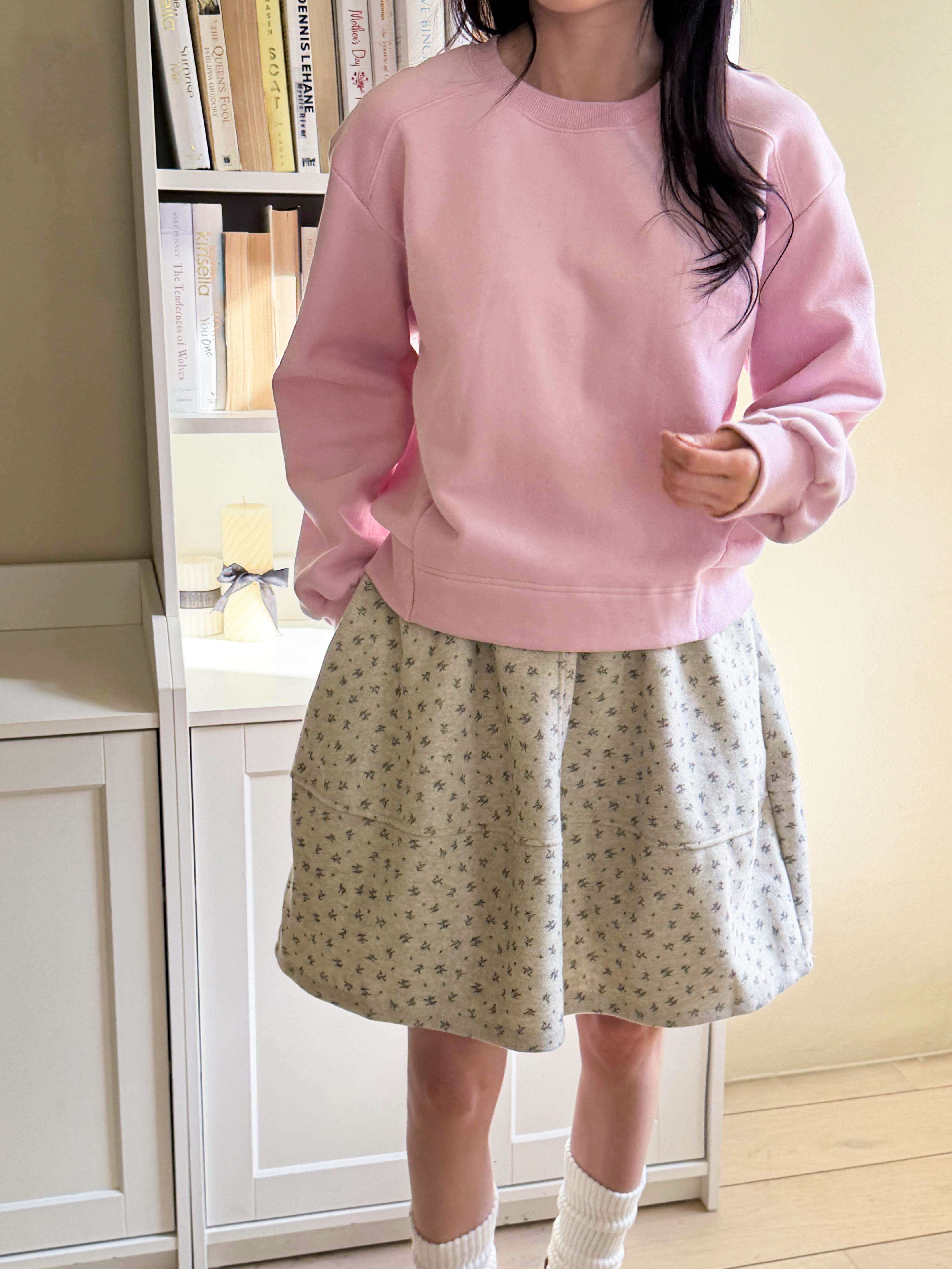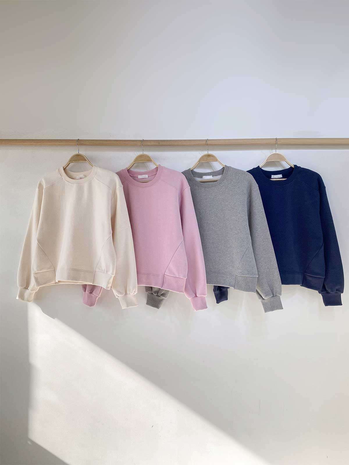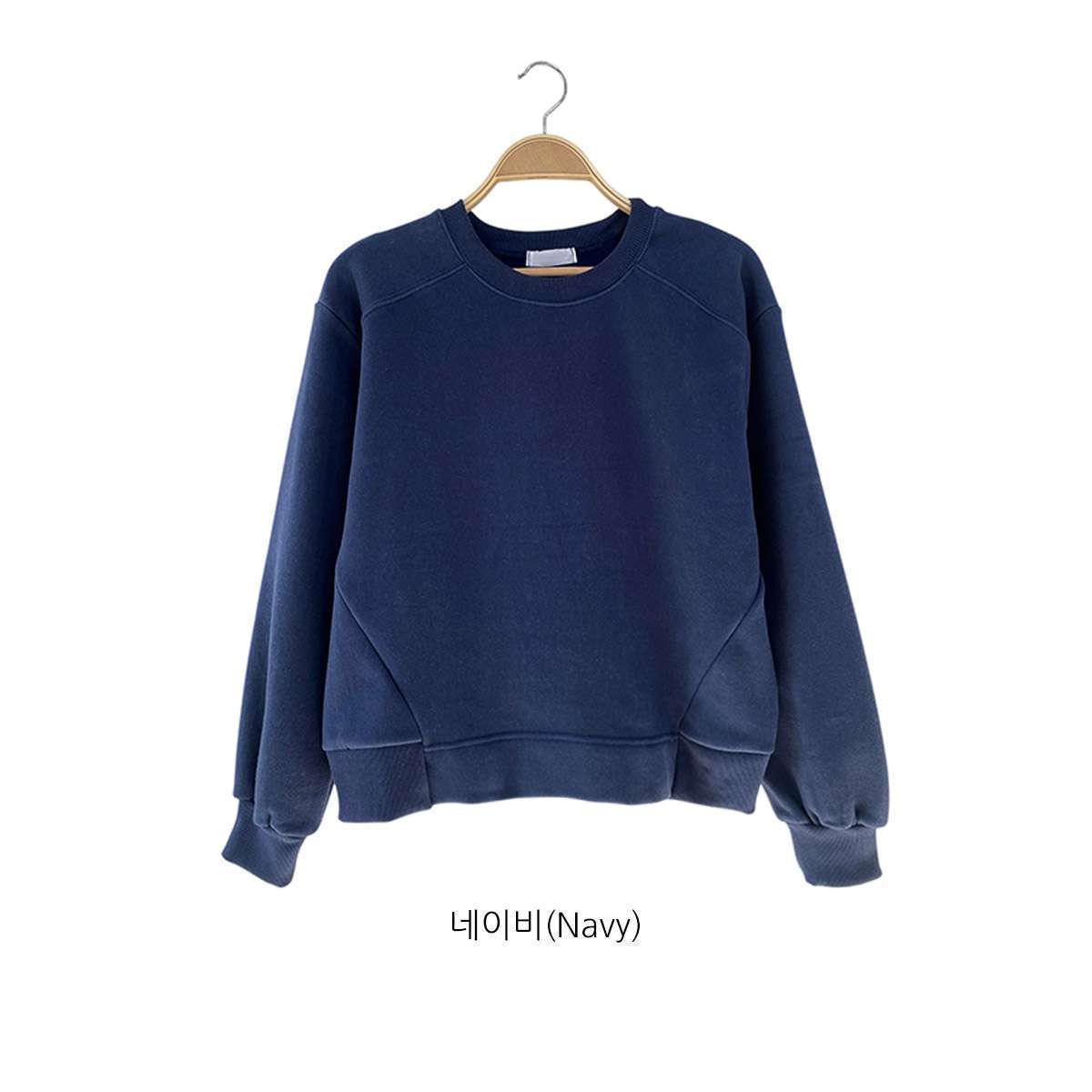 베이직하면서도 편안한 무드의 나그랑 세미 크롭 기모 맨투맨입니다.